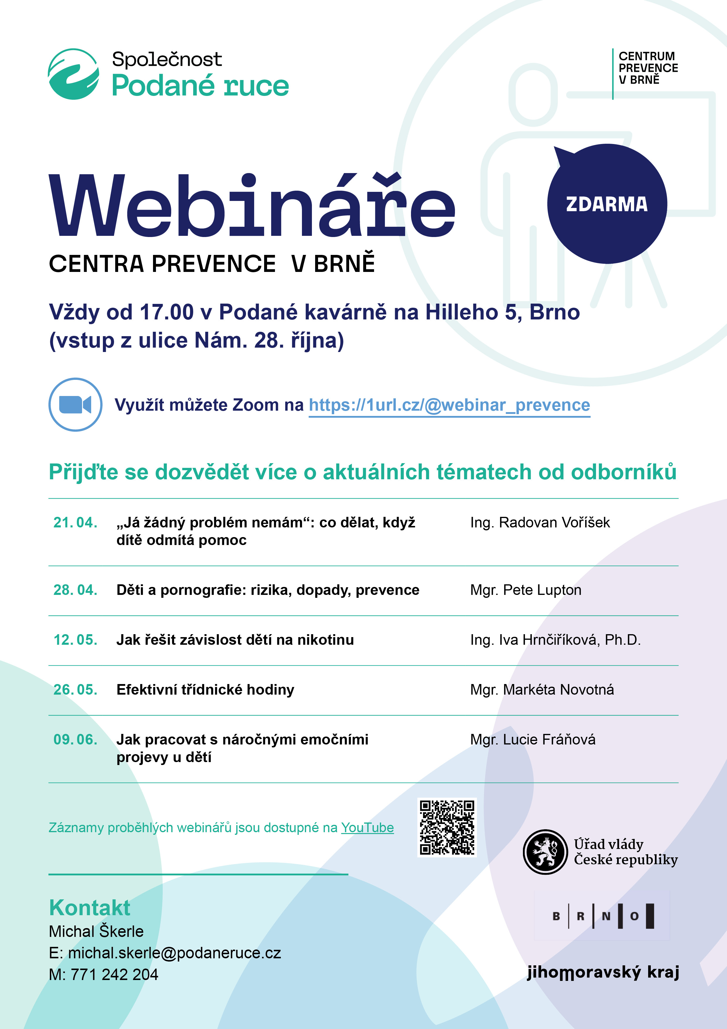 Nabídka jarních webinářů Centra prevence v Brně, které jsme pro Vás opět připravili.